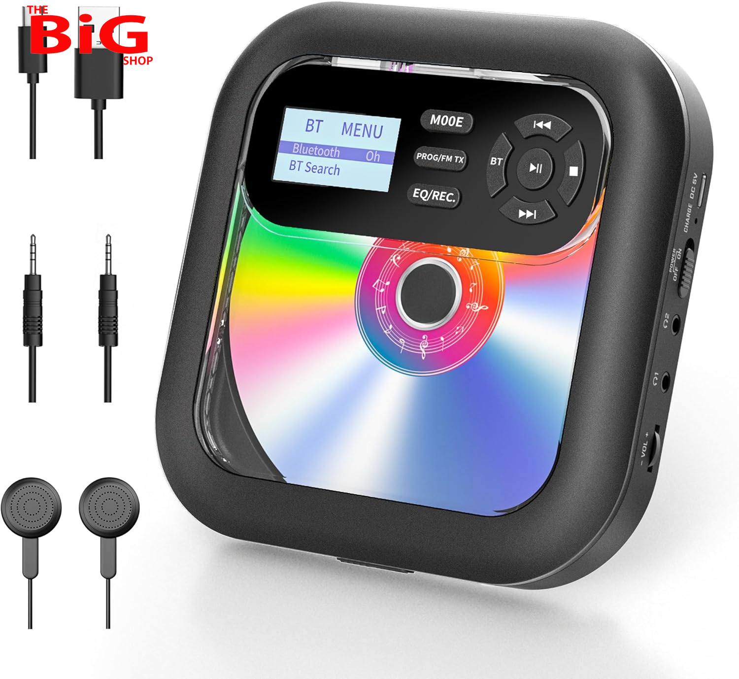 2025 NEW Monodeal CD Player with Bluetooth and Radio FM 2 in 1, Rechargeable Portable CD Player with Speakers, Support AUX/USB