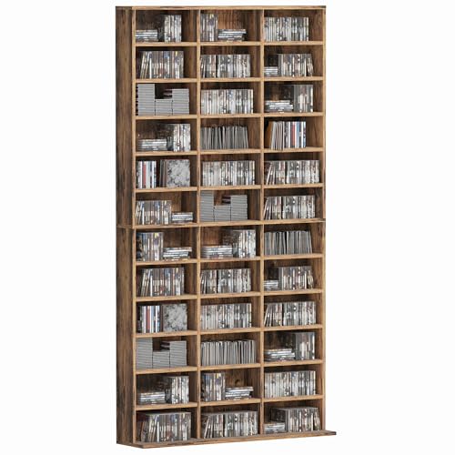 HOMCOM 720 CD/396 DVD Storage Unit, 396 Blu-ray Media Storage Shelf with 16 Compartments and 12 Adjustable Shelves, CD Tower for Living Room, Bedroom, Office, Rustic Brown
