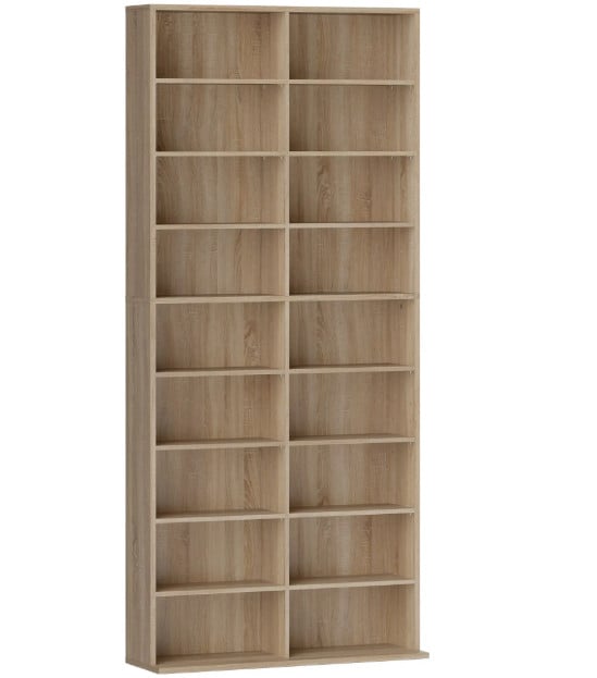HOMCOM 1116 CD/ 528 DVD Storage Unit, Media Storage Shelf, Wooden Display Unit with Adjustable Shelves, 102 x 195 cm, Oak Tone