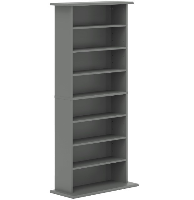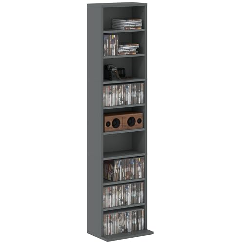 HOMCOM 260 CD/120 DVD Storage Unit, Blu-ray Media Storage Shelf with 9 Compartments and 6 Adjustable Shelves, CD Tower for Living Room, Bedroom, Office, Grey