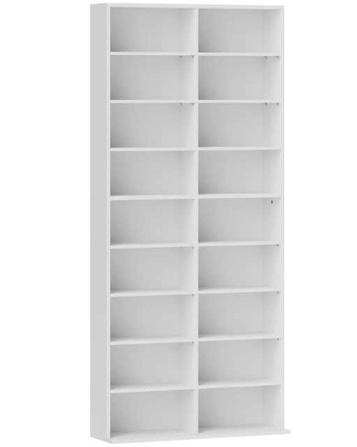 HOMCOM 1116 CD/ 528 DVD Storage Unit, Media Storage Shelf, Wooden Display Unit with Adjustable Shelves, 102 x 195 cm, White