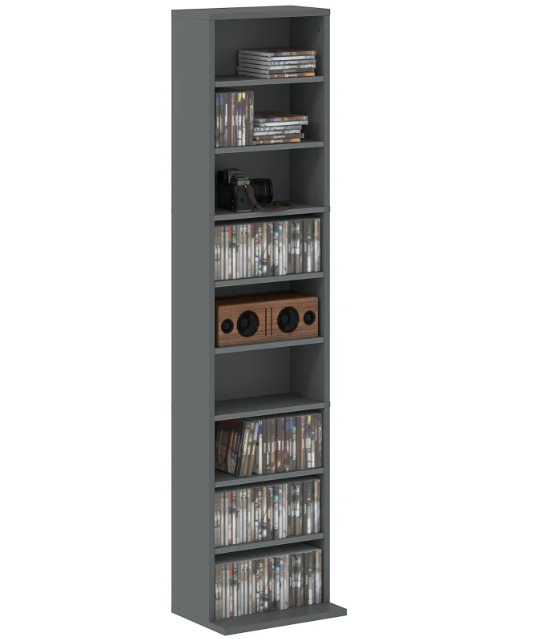 HOMCOM CD Storage Unit DVD Tower Blu-ray Storage Shelf for Living Room Grey