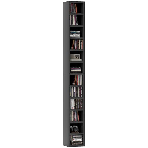 HOMCOM 260 CD Storage Unit 120 DVD Storage Tower with 9 Compartments Grey