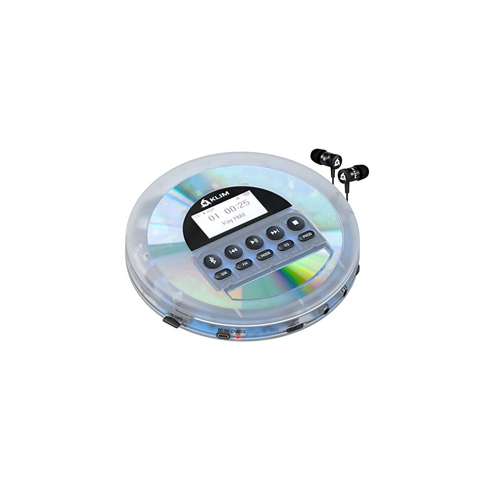 KLIM Nomad Transparent - NEW 2023 - Portable CD Player Walkman with Long-Lasting Battery - Includes Headphones - Radio FM - MP3 CD Player Portable - T