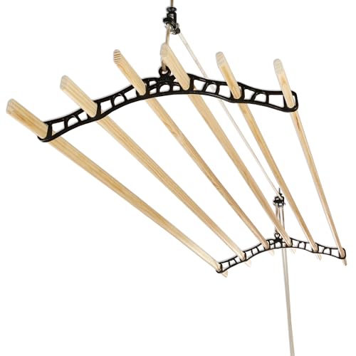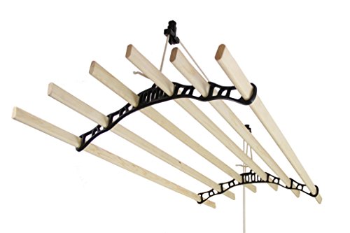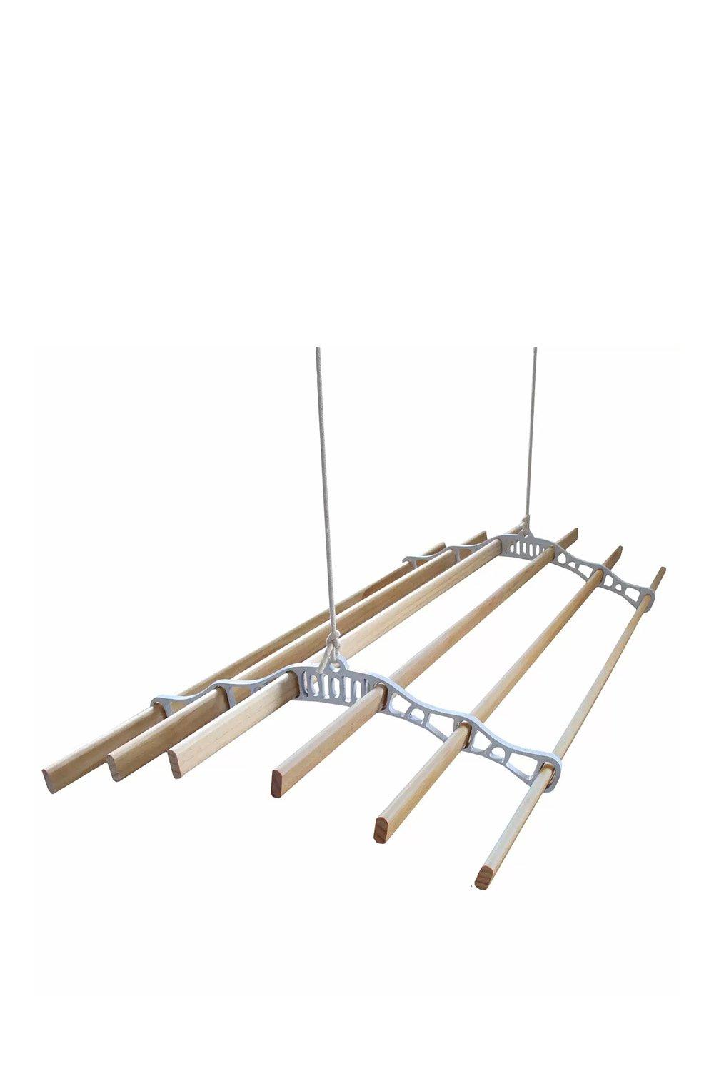 Clothes Airer Ceiling Pulley Maid Traditional Mounted Clothing Dryer 6 Lath Laundry Drying Rack Rail 2.4m Black Quick & Easy Assembly Ethically Sourced Varnished Pine Wood & Powder-Coated Cast Iron
