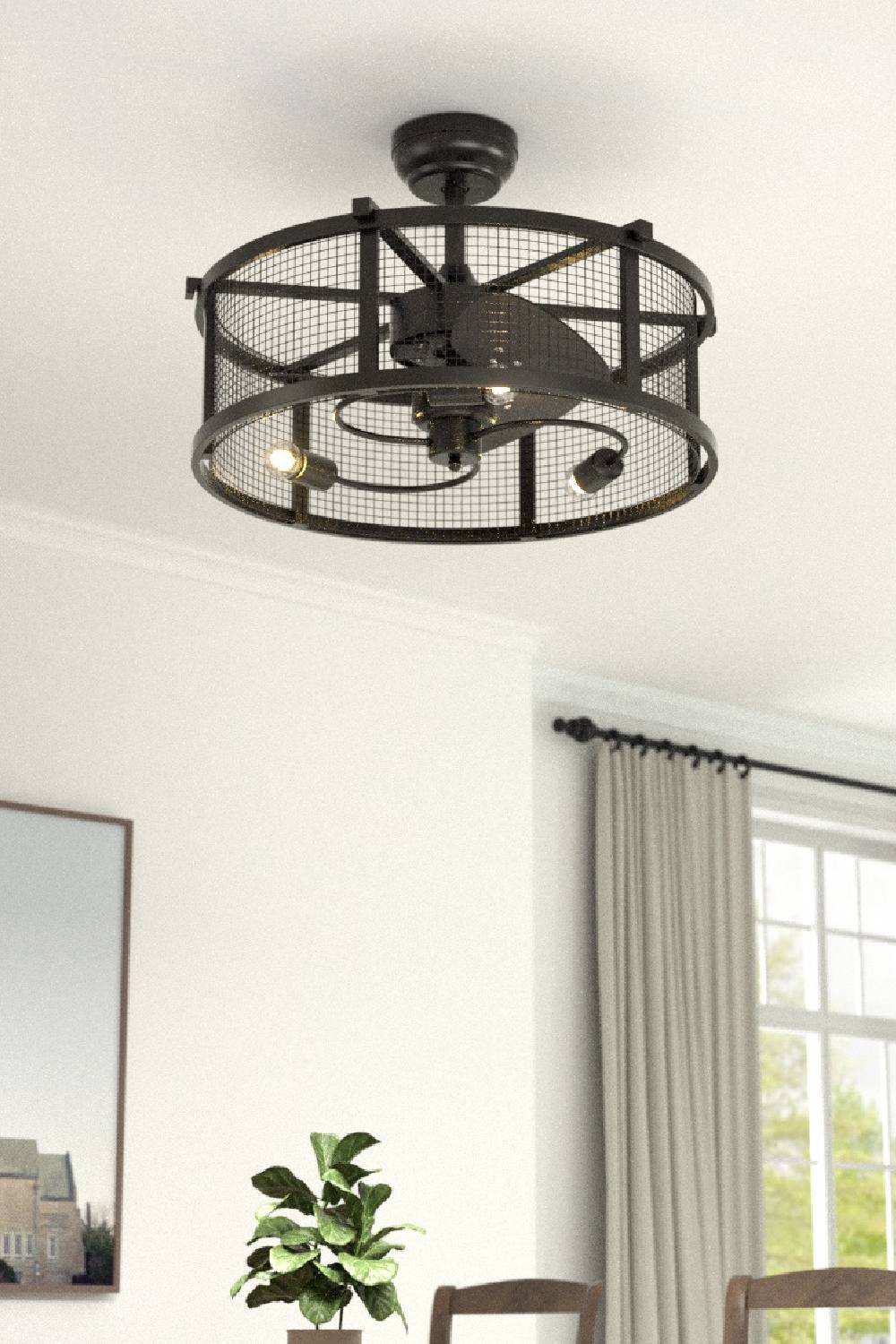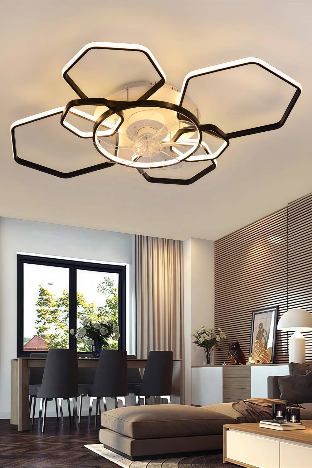 Living and Home Remote Control Geometrical Ceiling Mount LED Fan Light in Black