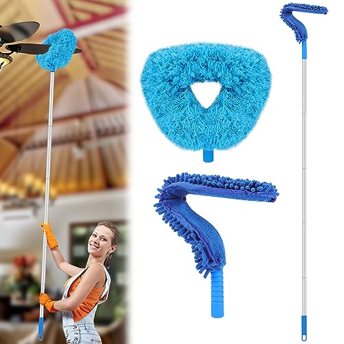 Lalafancy Microfibre Feather Duster with Extension Pole Up to 78 Inch, 2 Pcs Bendable Washable Long Reach Duster for Cleaning High Ceiling and Fans, Blinds, Fan, Interior Roof, Furniture