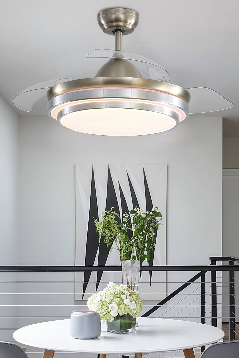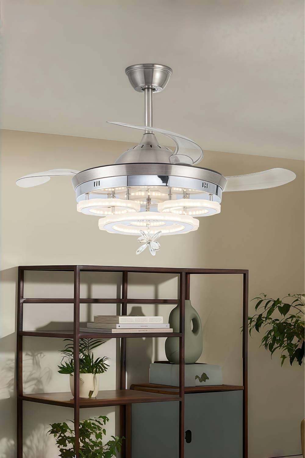 Living and Home Contemporary Ceiling Fan Light with Retracted Blades in Metallic Silver
