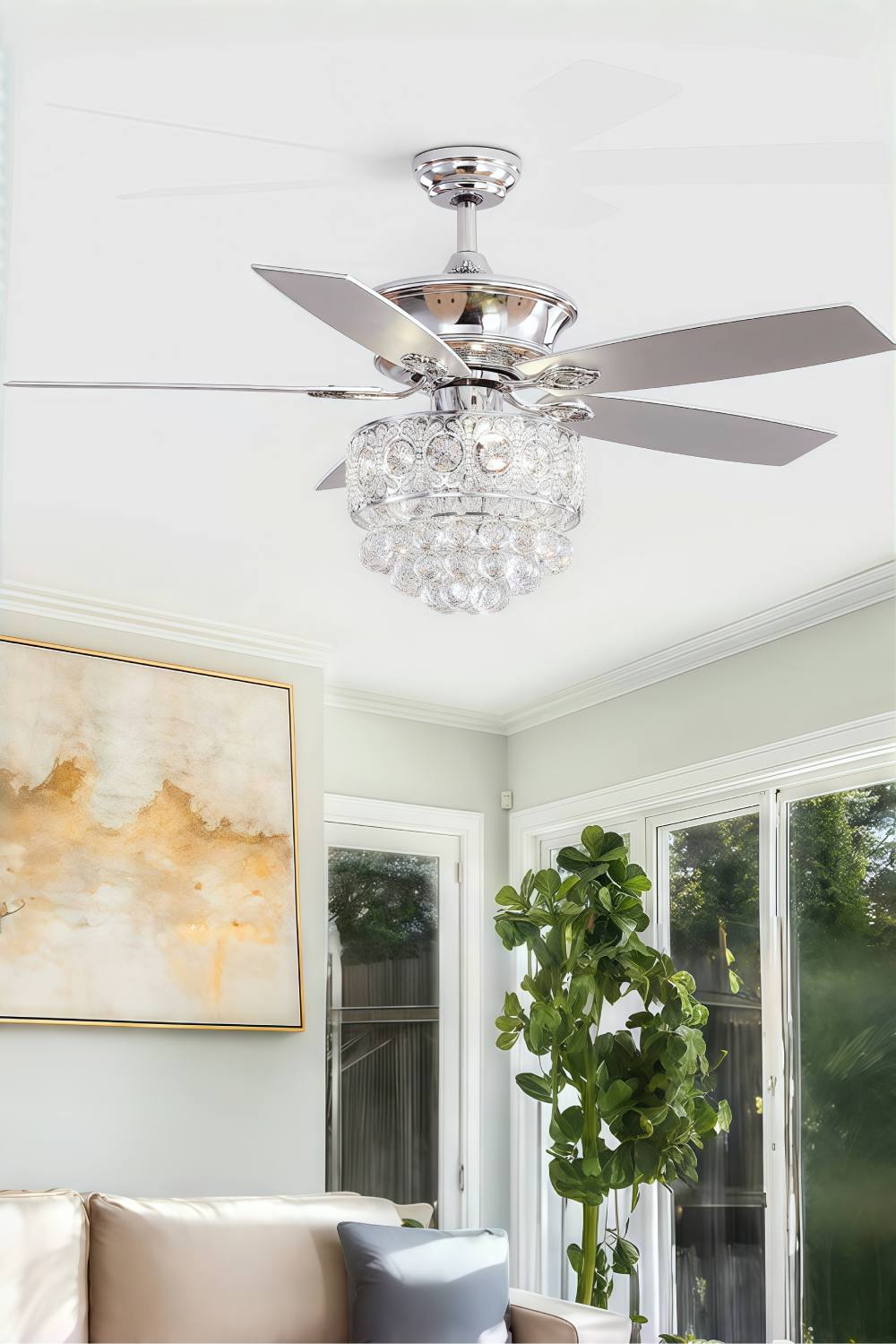Living and Home 5 Blade Modern Crystal Ceiling Fan with Lights in Metallic Silver