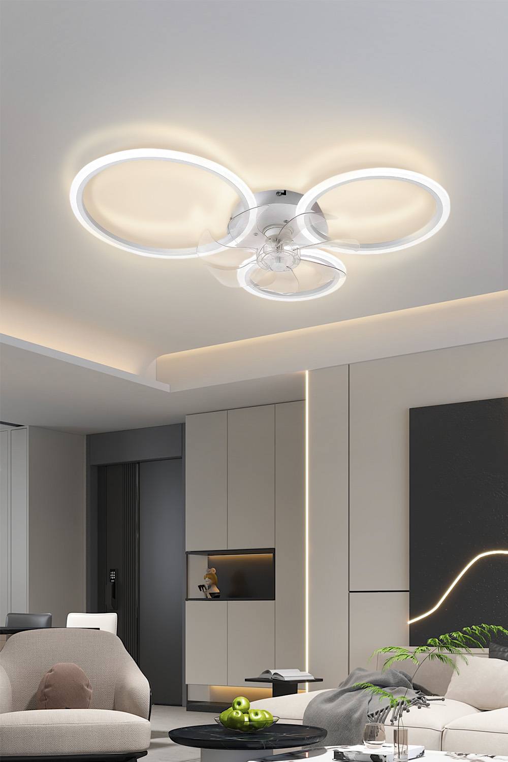Living and Home Remote Control Geometrical Ceiling Mount LED Fan Light in White