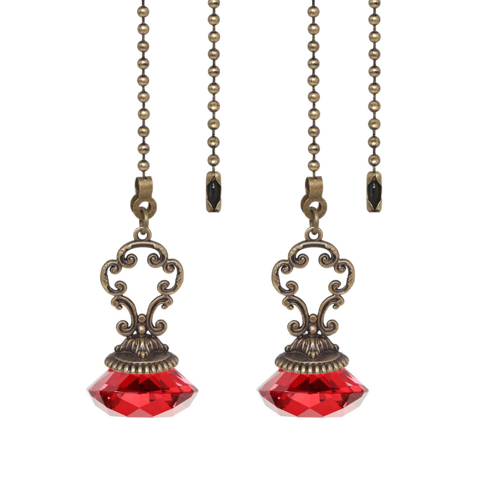 Vintage Crystal Pendant Necklace with Auto Trim and Ceiling Fan Chain Extension, Elegant Multifunctional Design, 2 Pieces Red Solid