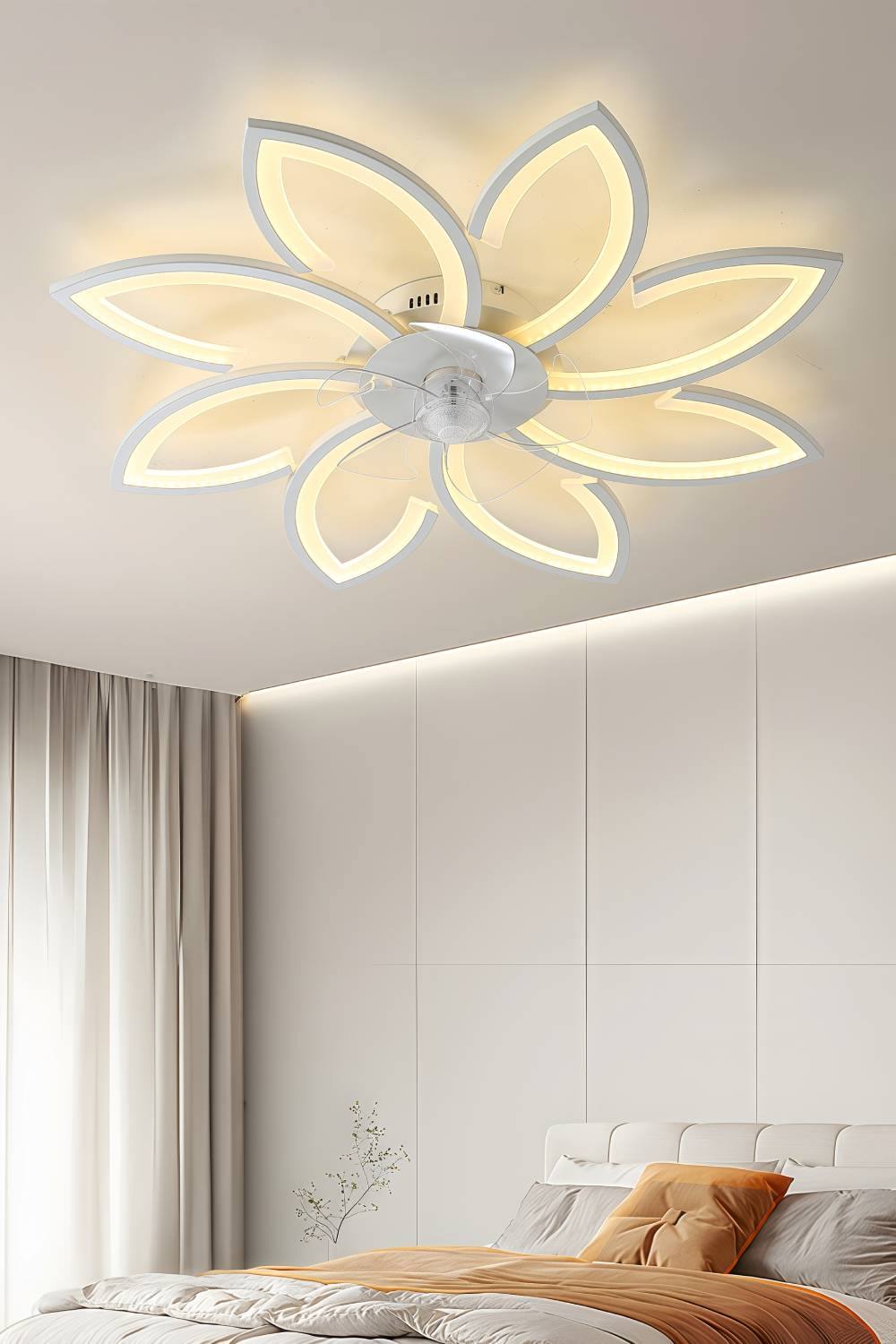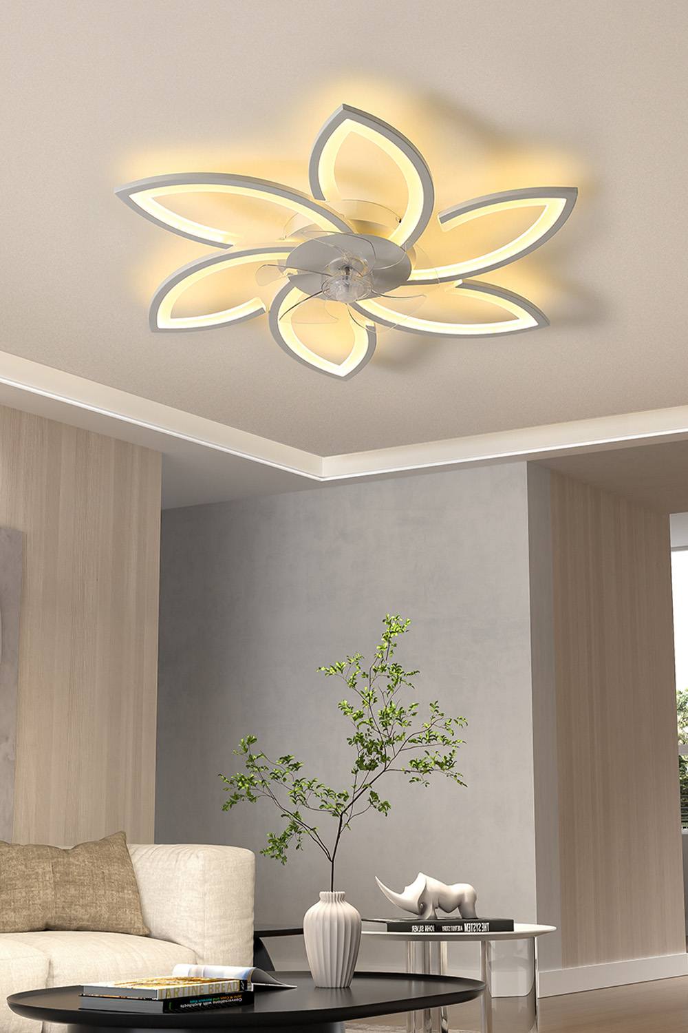Living and Home Remote Control Modern Flower Shape Ceiling Fan with Light in White