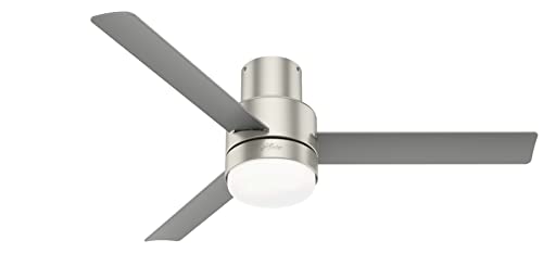 HUNTER FAN Ceiling Fan Gilmour 132 cm Indoor and Outdoor, with Light and Handheld Remote, Matte Nickel, 3 Blades Matte Silver and Matte Silver Ideal for Summer or Winter, Model 50939