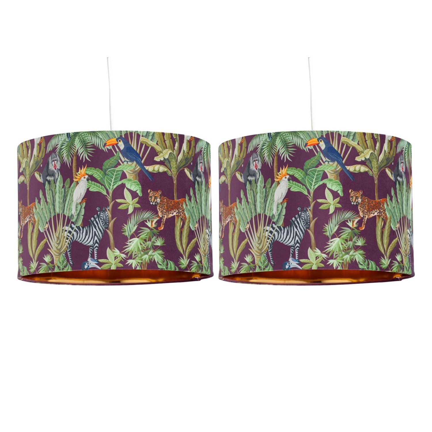Set of 2 Safari Jungle Easy Fit Ceiling Lightshade Table Lamp Pendant Shades