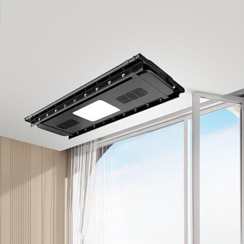 RVUEM Electrical Drying Rack, Ceiling Clothes Drying Rack, Ceiling Clothesline, Adjustable Height And Length, With Remote Control, For Clothes Wall And Ceiling,Black,12W lighting