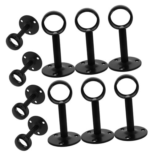 Didiseaon 16pcs Stainless Steel Ceiling Curtain Rod Brackets with Smooth Black Finish Install Hanging Pole Supports for Wall and Balcony Drying Rack Holder Diameter