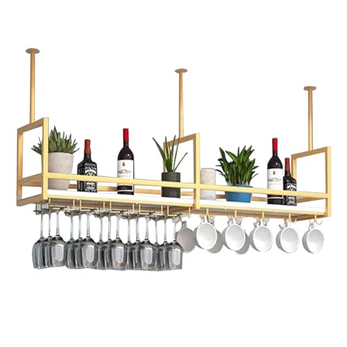 GDMDPTE Ceiling Wine RackGold Hanging Wine Bottle Holder & Glass Storage nizer for Kitchen Bar Restaurant120cm Wine Glass Drying Rack Stylish CeilingMounted Design