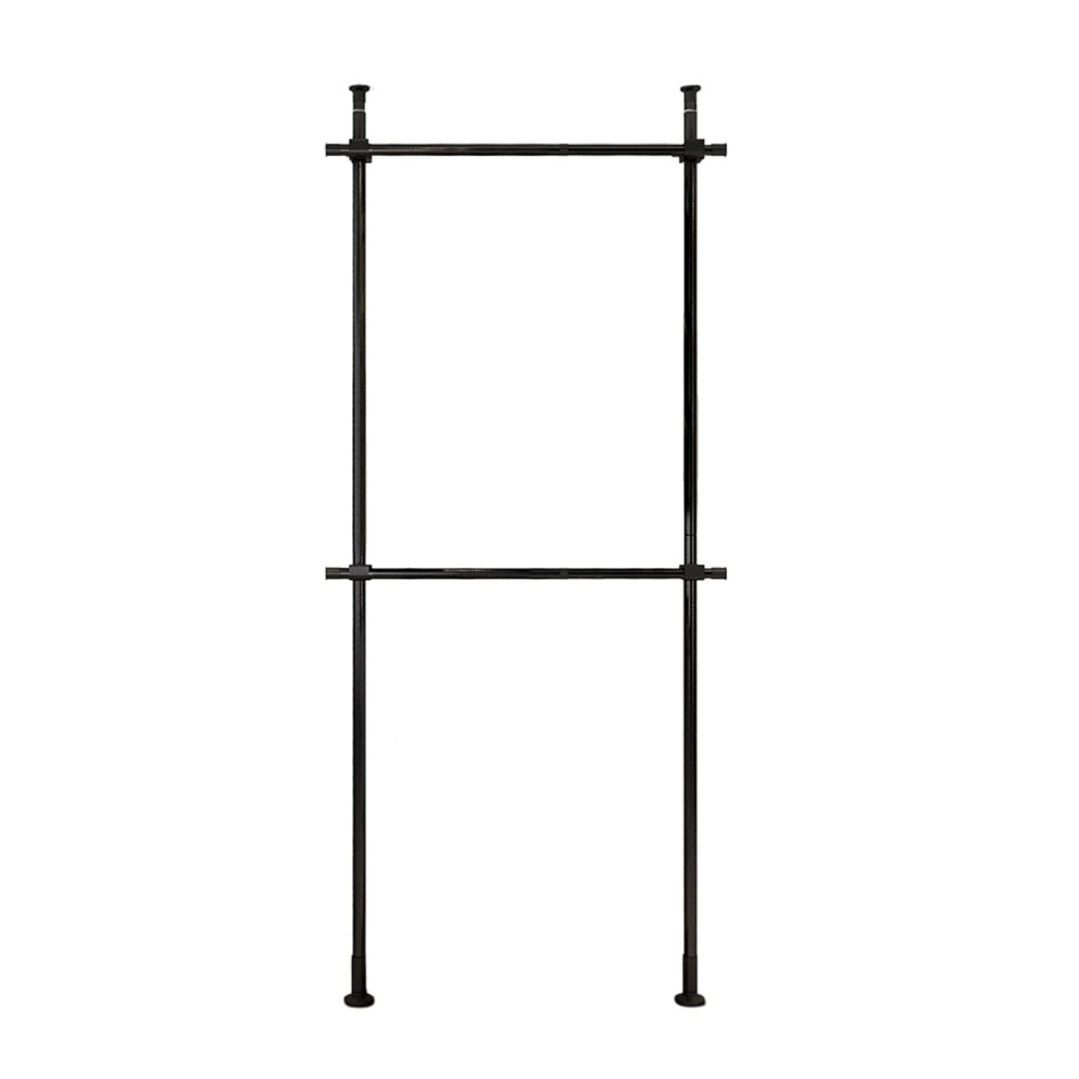 Laundry Drying Rack Floor to Ceiling Adjustable Carbon Steel Closet System with Dual Hanging Rods 220lbs Capacity Black