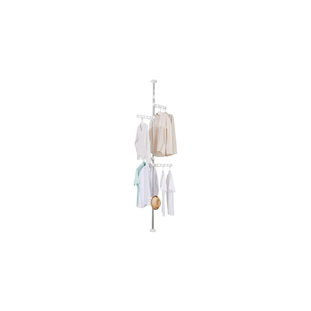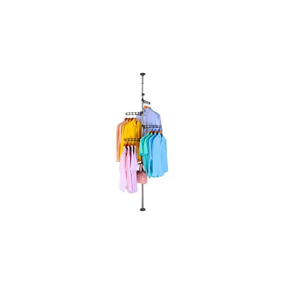 Baoyouni 4-Tier Standing Clothes Laundry Drying Rack Grament Coat Hanger Organizer Floor to Ceiling Adjustable Metal Corner Tension Pole Spce Sa