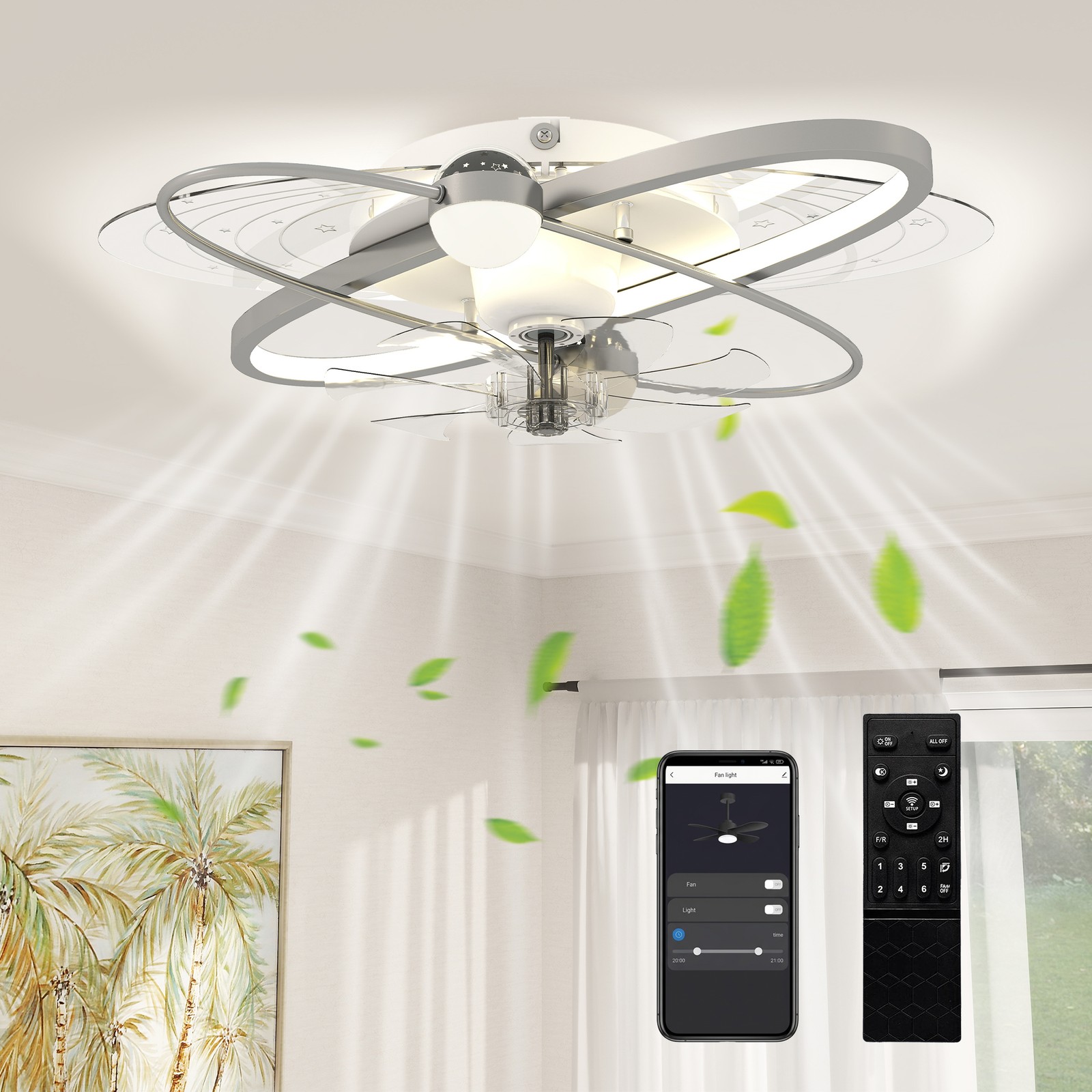 CHANFOK Smart Ceiling Fans with Lights Compatible with Alexa and Google Assistant 20", Low Profile Ceiling Fan with Light and Remote & APP Control, 6-