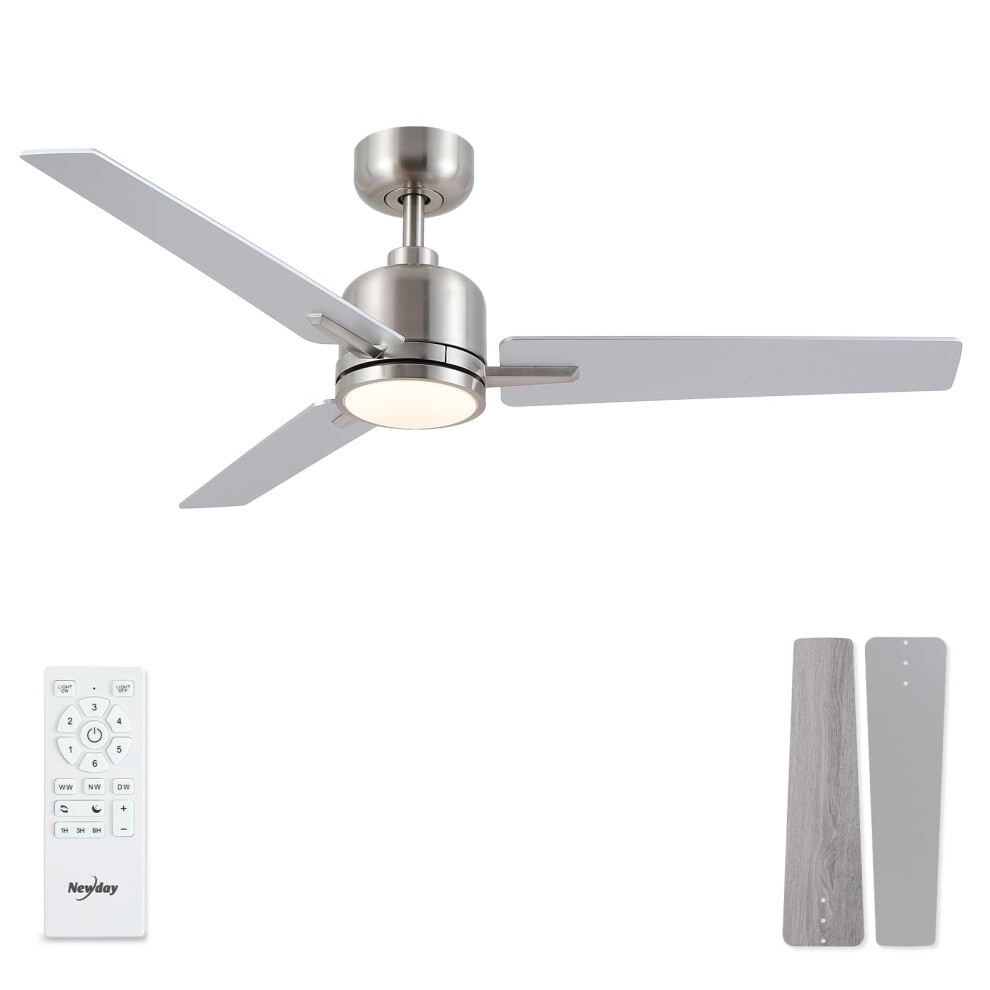 Newday Silver and Grey Ceiling fan with Lights and Remote, 48? Silent Ceiling Fan with Dimmable LED 24W, Reversible DC Motor, 6 Speeds, 3 Timer for