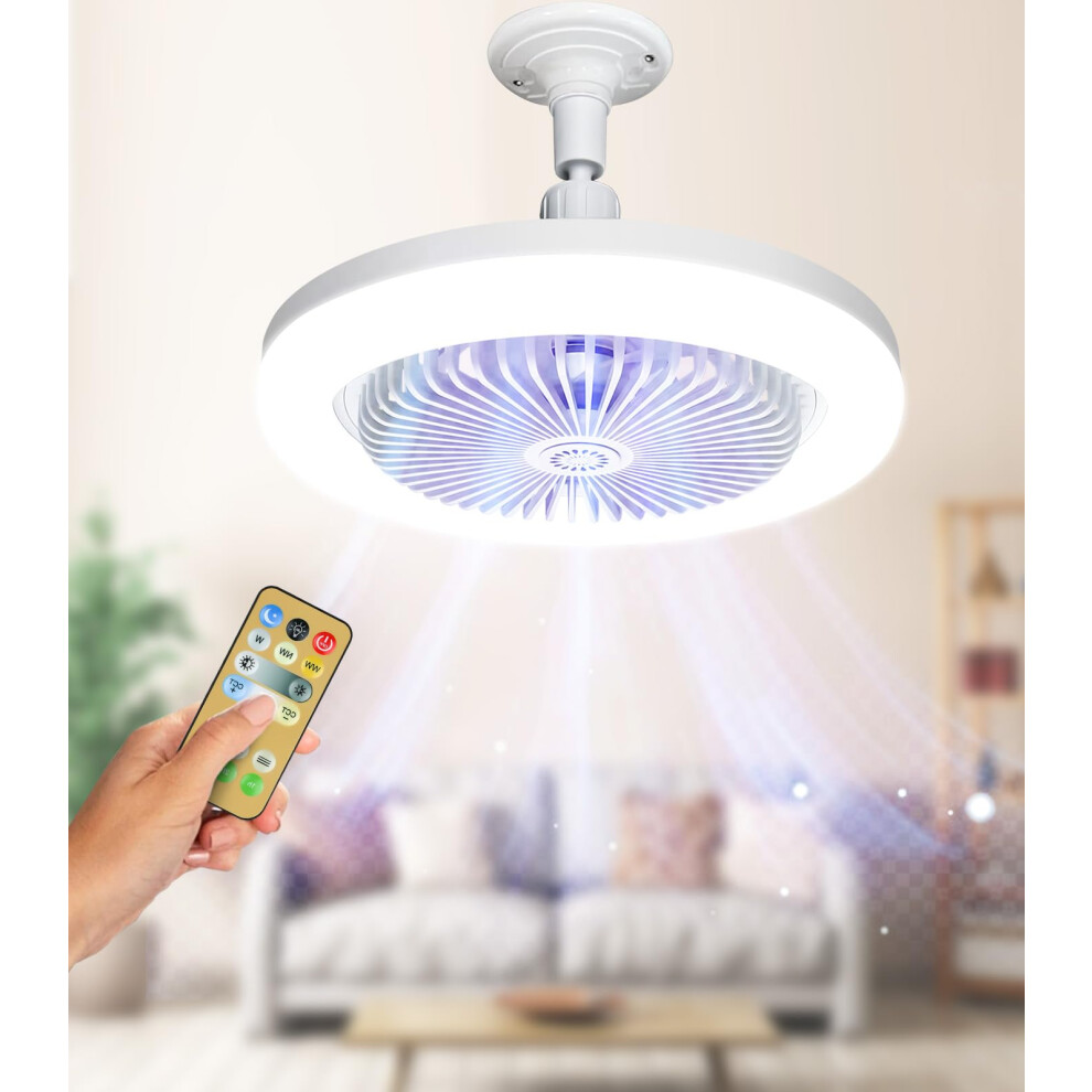 30W Ceiling Fan with Built-in Lights E27 Remote Control for Ceiling Lighting in Bedroom and Living Room Areas