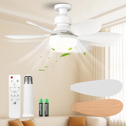 BomKra LED Ceiling Fan with Lights, 30W Ceiling Light and Remote, Timing, 3 Color Dimmable LED, 3 Speeds, Small Electric Fan Lamp for Small Spaces Bedroom Home Office Dormitory (White)