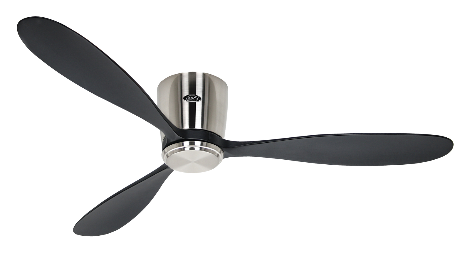 Low profile Ceiling fan without lights Plano Wood WiFi Chrome Black DC Fan Motor