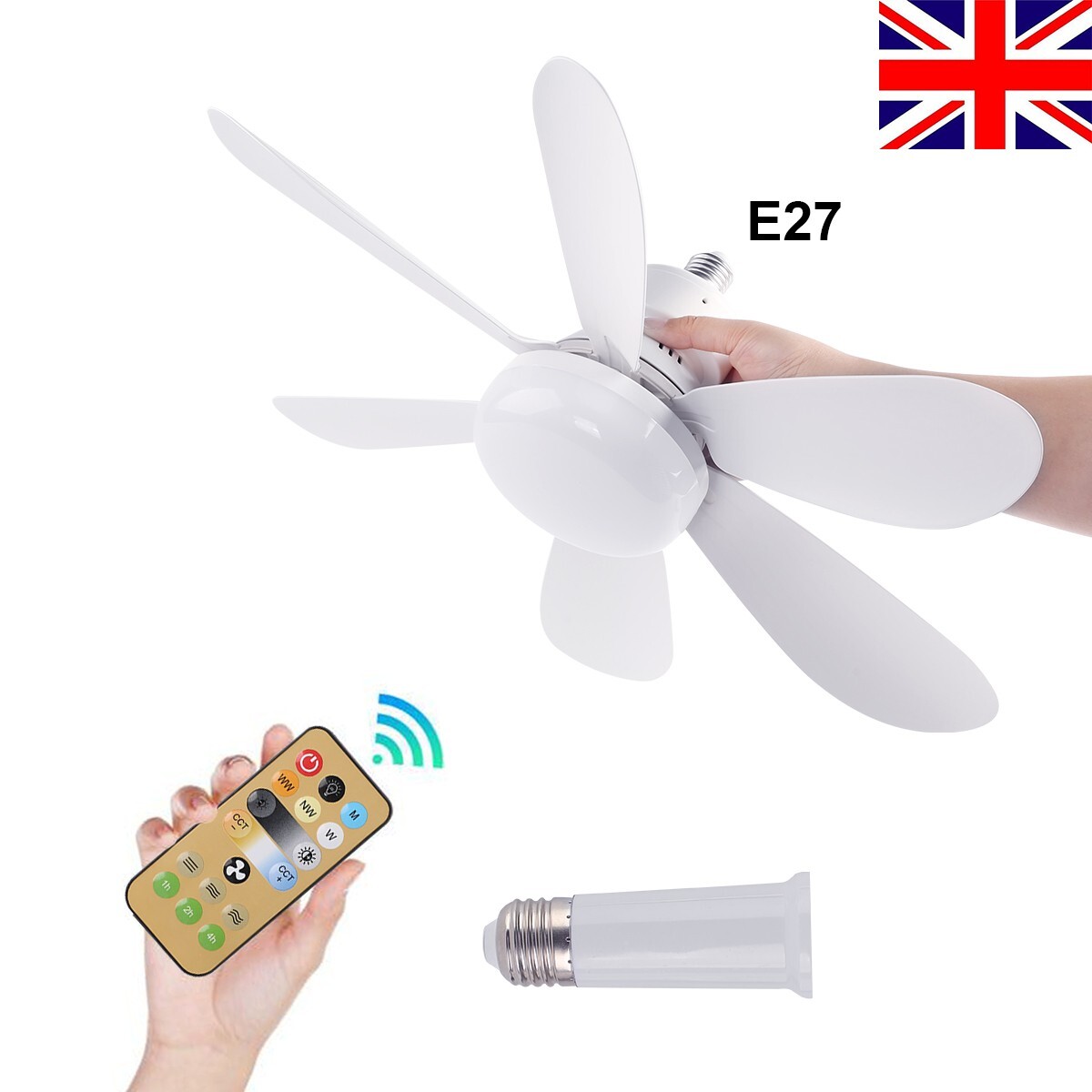 UK Ceiling Fan LED Light with Remote Control E27 Easy DIY Screw-In Bulb Fixture