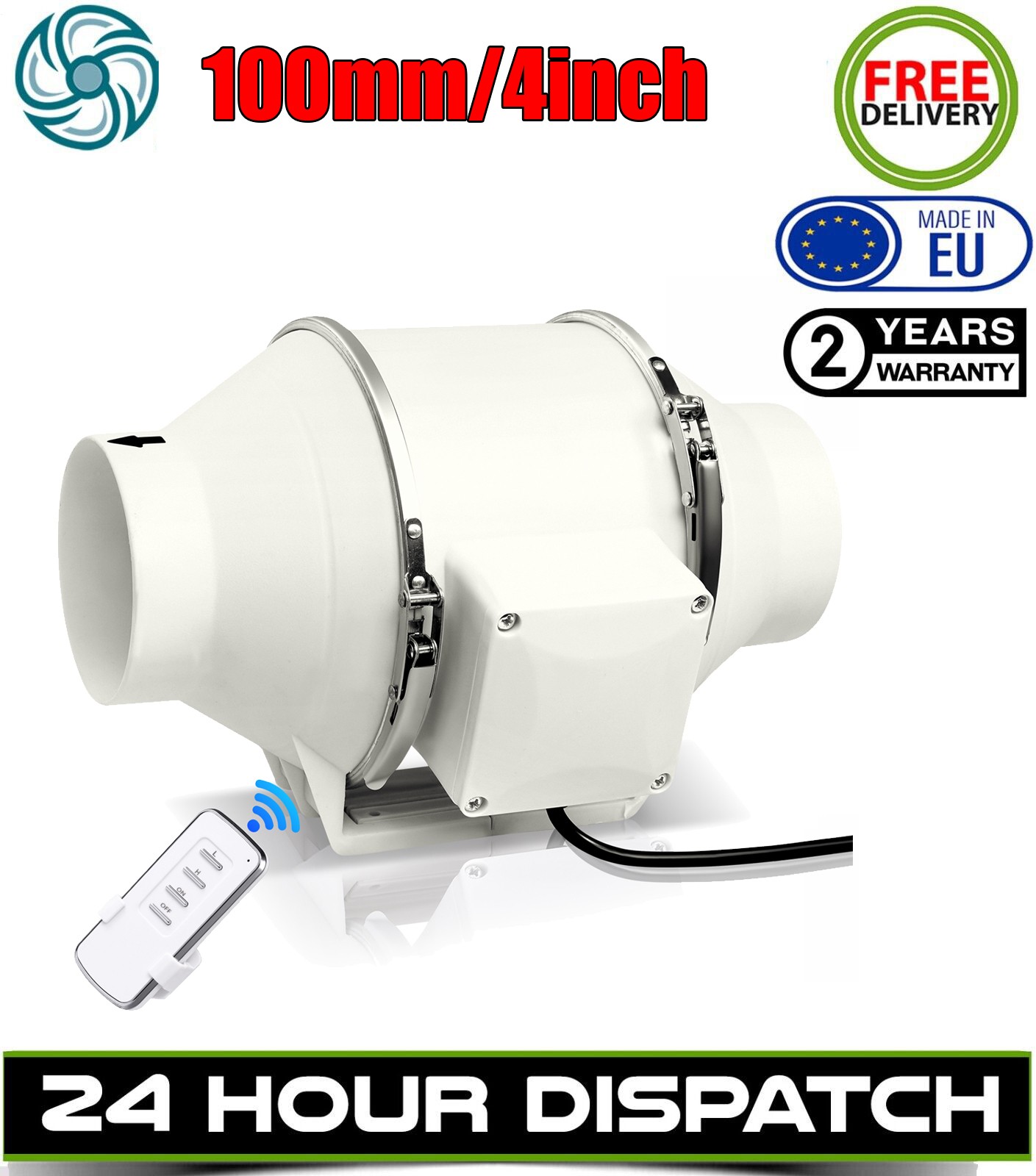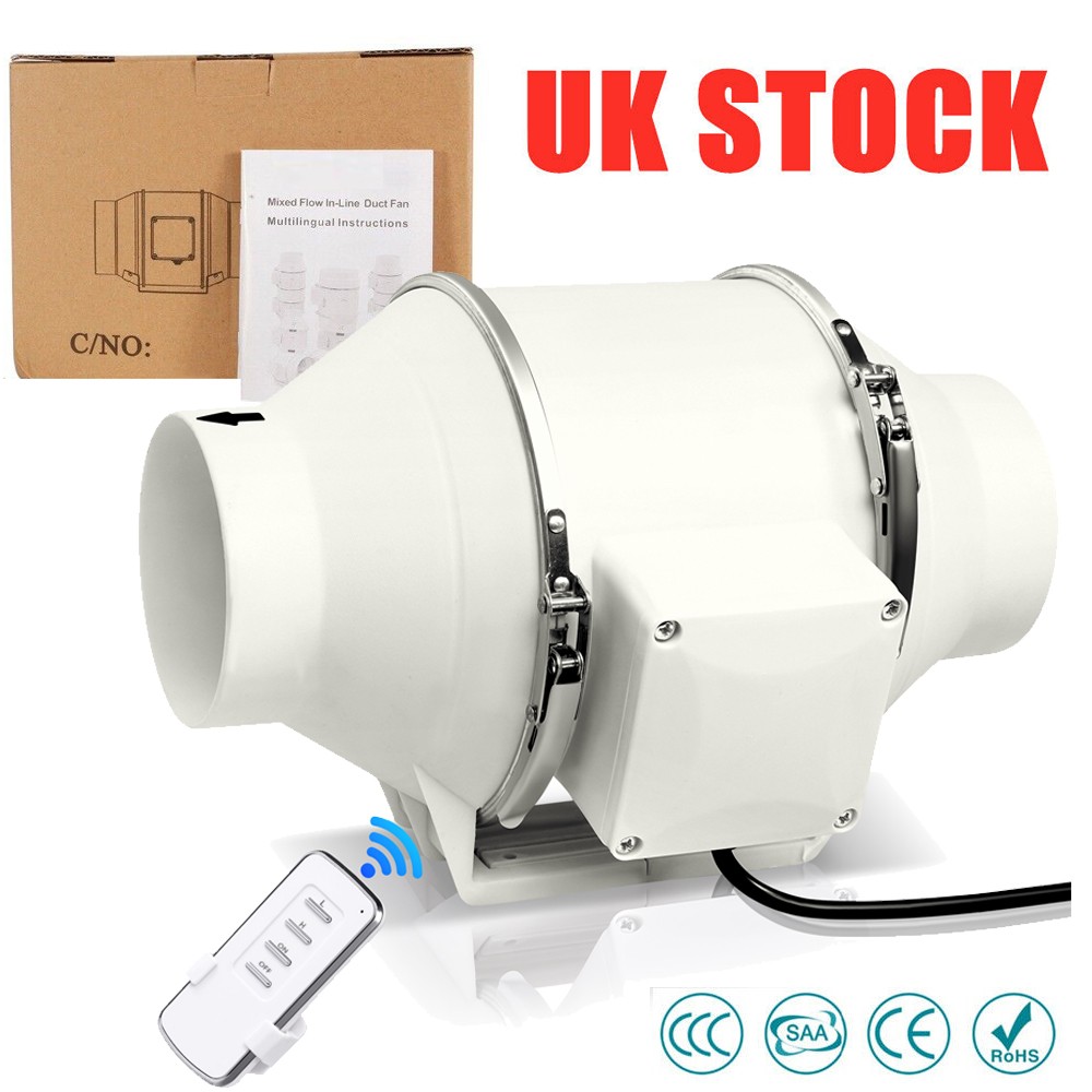 UK 100mm 4 inch diameter Inline Extractor Fan Bathroom Shower Ceiling Loft Mount