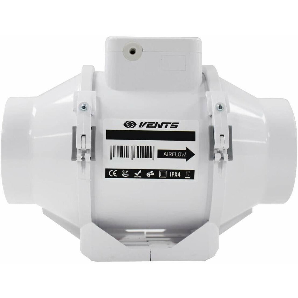 VENTS UK 100mm Inline Extractor Fan - Quiet Powerful Mixed-Flow, 2-Speed, Up to 6m Ducting, Bathroom/Shower Ceiling/Loft Mount, Damp Control