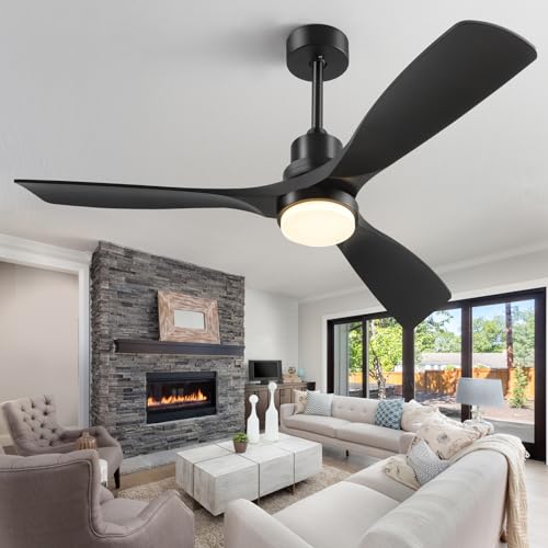 Ceiling Fan with Lights and Remote, 52 Inch Black Ceiling Fans with 3 Downrods, 3 Blades, Timer, 6 Speed Modern Fan Quiet Reversible DC Motor for Patio Bedroom Outdoor/Indoor