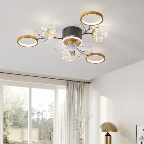 OMGPFR LED Ceiling Fan with Lights, Reversible Remote, 6 Speeds Modern Bedroom Fan Light, Quiet Dimmable Small Ceiling Light for Living Room, Gold 50CM