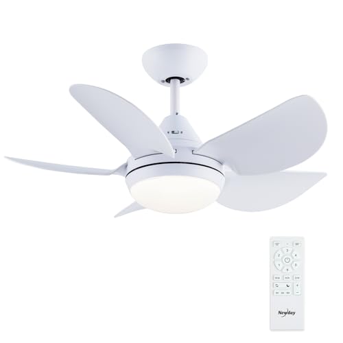 Newday Ceiling Fan with Lights, 30'' Small Modern Ceiling Fan with 5 Reversible Blades, Remote Controls, Adjustable Color Temperature, for Indoor/Outdoor, Matte White
