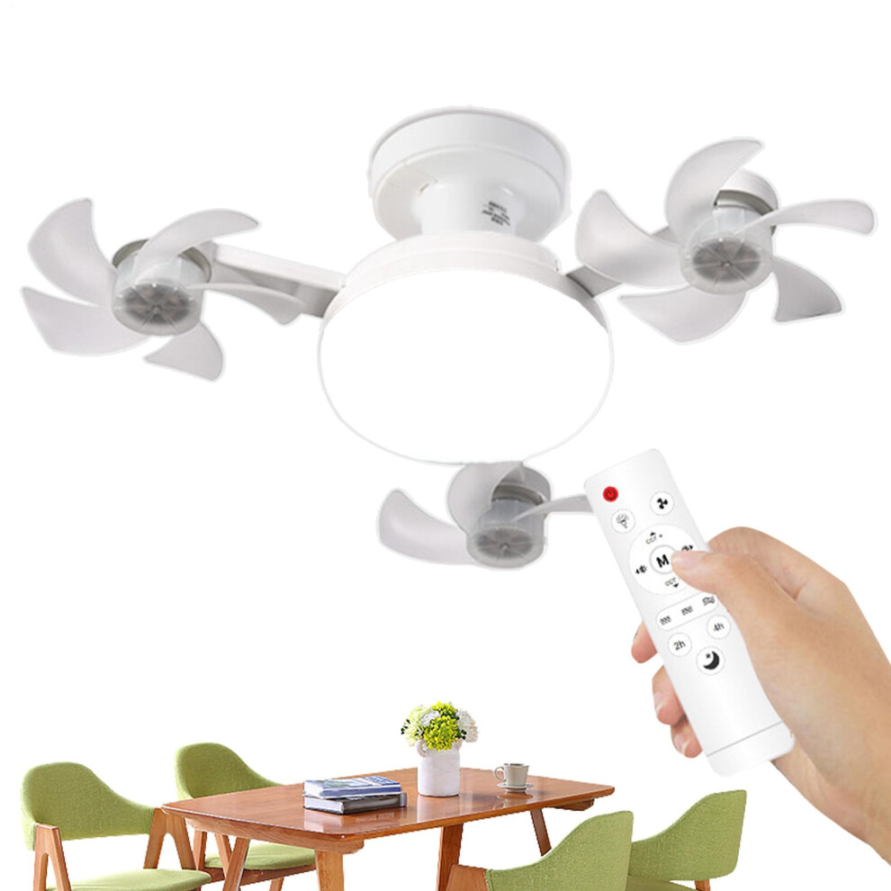 (white, 6leaf fan light) Ceiling Fan With Light E27 Universal Screw Mouth Installation Remote