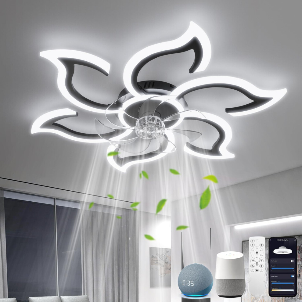 DIDADIDA Silent Ceiling Fan with Light, Ceiling Fan with Remote Control and Lighting APP dimmable Brightness 70W Creative Acrylic Flower Shape Ceiling