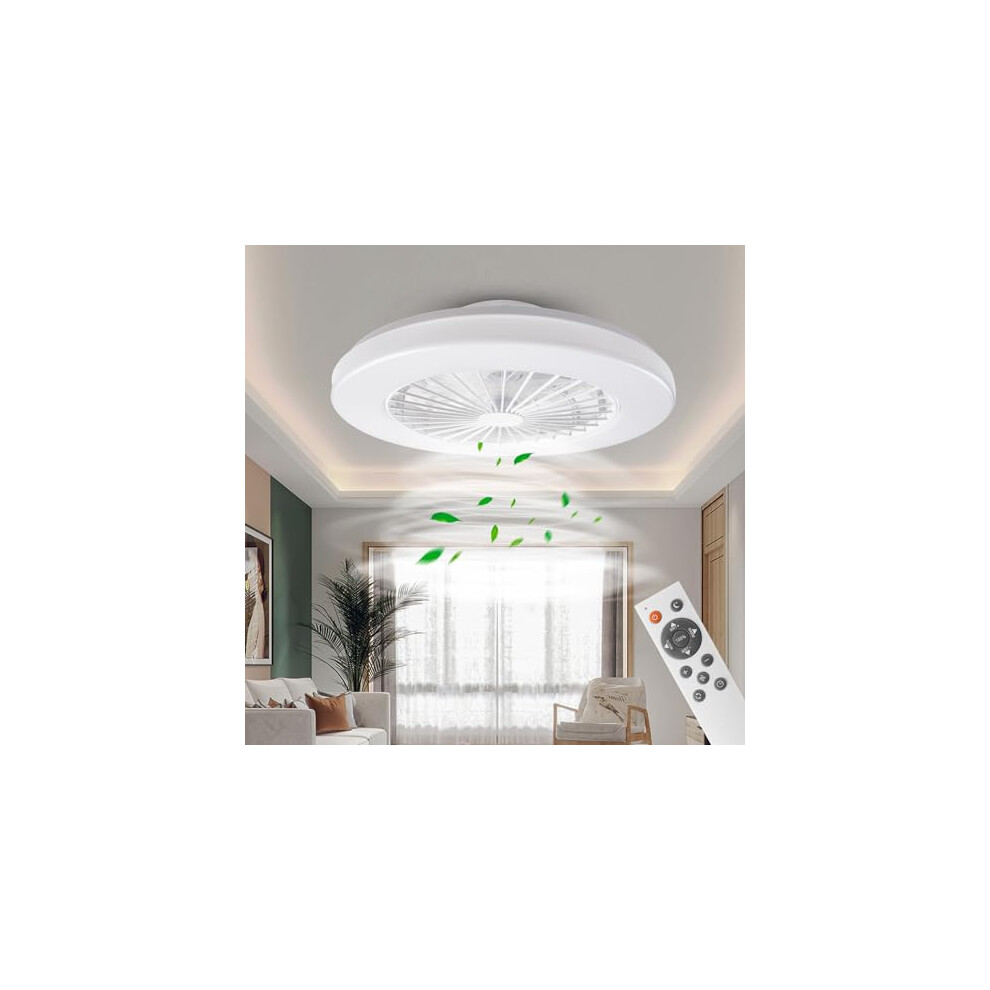 BKZO Modern LED Ceiling Light with Fan, Ceiling Fan with lamp, 24 Ventilation speeds, infinitely dimmable Light for Living Room, Bedroom, Office, 3000-5500 K,(White 48CM)