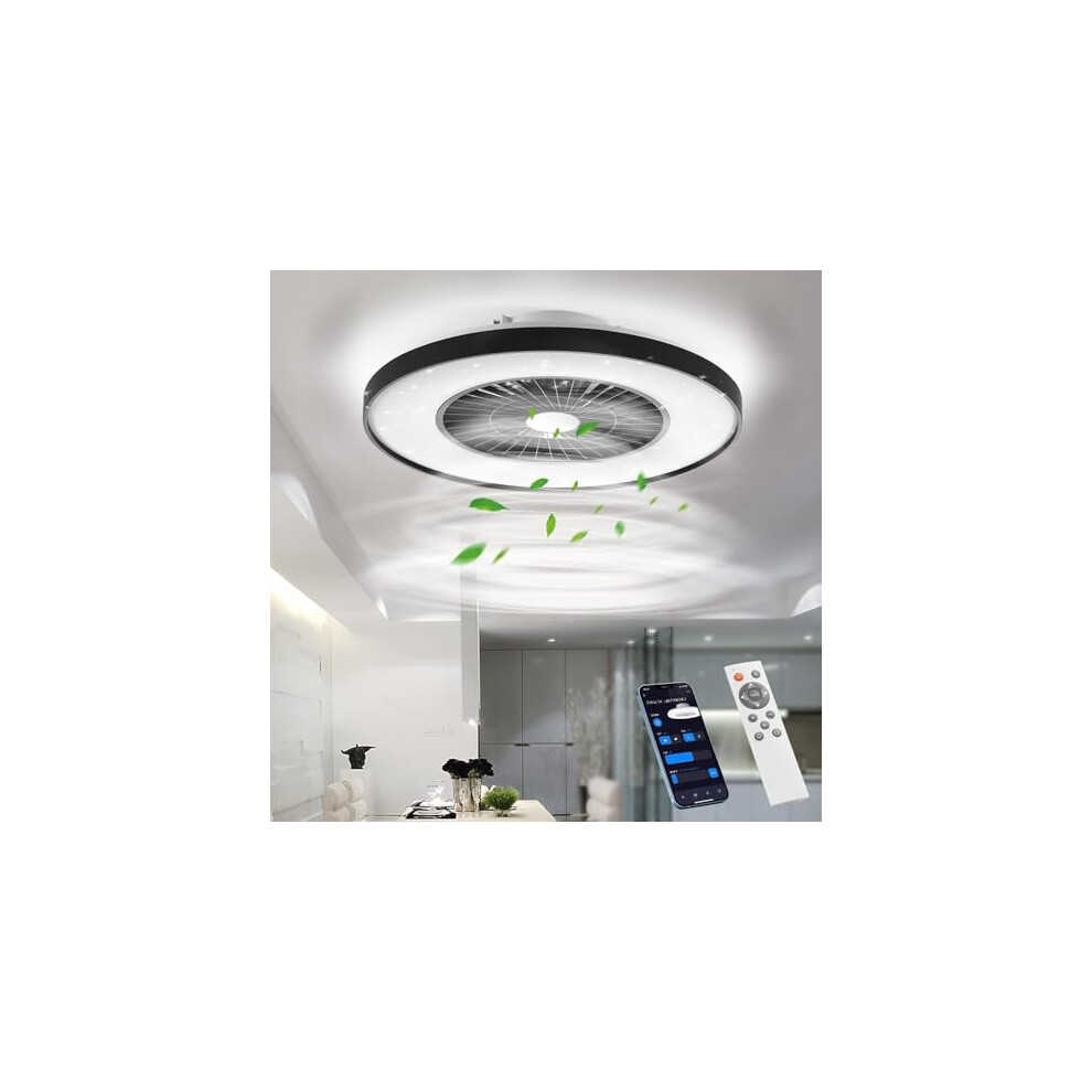 BKZO Modern LED Ceiling Light with Fan, Ceiling Fan with lamp, 24 Ventilation speeds, infinitely dimmable Light for Living Room, Bedroom, Office, 3000-5500 K, (Black Frame 50CM)
