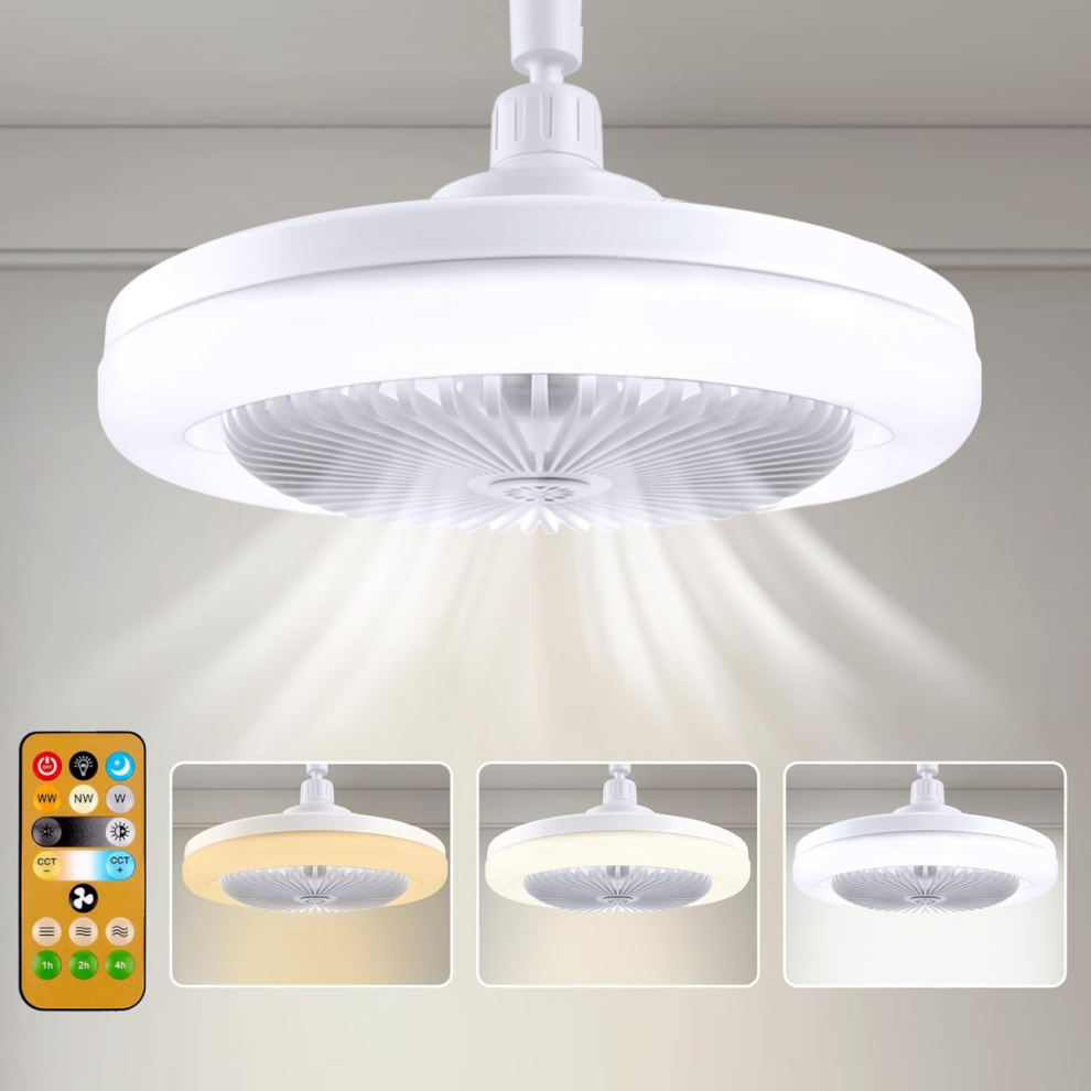 Enclosed Ceiling Fan with Light 3 Fan Speeds Dimmable 3 Light Colors 10inch Screw In Ceiling Fan Light with Remote Control