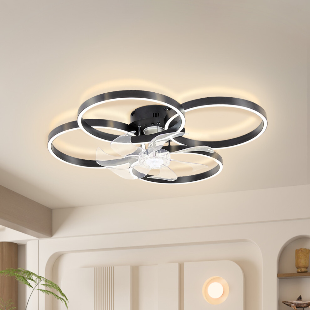 Fiauli Low Profile Ceiling Fan with Lights, Modern Dimmable Flower Shape Ceiling Light Fan with Remote Control/app Control, LED Flush Ceil Fan for Bedroom, Dining Room Black