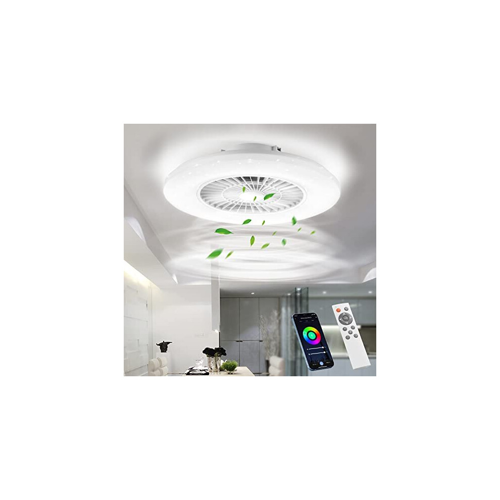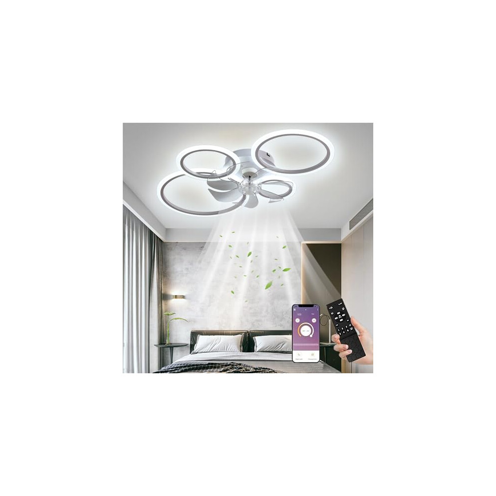 Ceiling light with fan quiet white ceiling fan with lighting app and remote control 120W dimmable LED for living room bedroom and dining room 6-speed timer mute reversible ceiling fan with lam