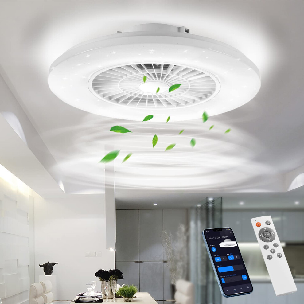 NIORSUN 50CM LED Ceiling Light with Fan and Remote & APP Control, Flush Mount Ceiling Fan, Stepless 6 Speeds,Quiet Dimmable Ceiling Light for Living Room(White)