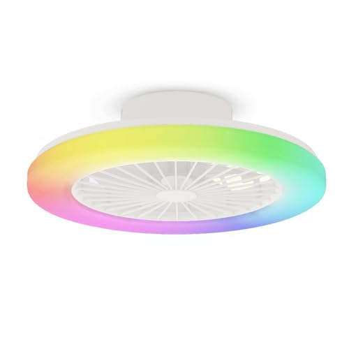 BKZO 55 cm Smart LED Ceiling Light with Fan, Ceiling Fan Lights Without Lampshade, Wind Speeds Adjustable, Stepless Dimming Light, RGB dimming, Modern Fan Lighting, 3000-5500K [Energy Class F]