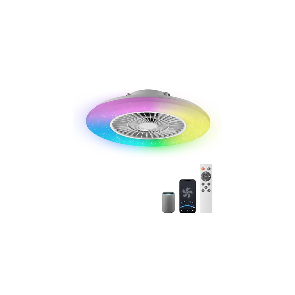BKZO Modern LED Ceiling Light with Fan, RGB Ceiling Fan Lights, 6 Ventilation speeds, infinitely dimmable Light for Living Room, Bedroom, Office, 3000-5500 K,(White 48CM RGB)