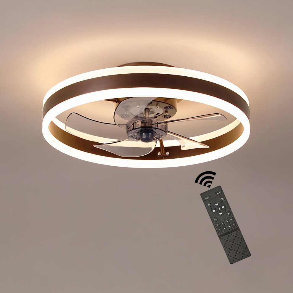 Ceiling Fan with Lighting, 50cm Brown Modern LED Dimmable Ceiling Light and Fan with Remote Control and Timer
