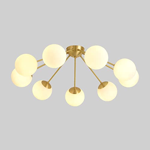 Gold Brushed Brass Lamp Glass Globe Flush Mount Fixtures Contemporary Sputnik Chandeliers Ceiling Lights for Bedroom Living Dining Room Size 9-Light
