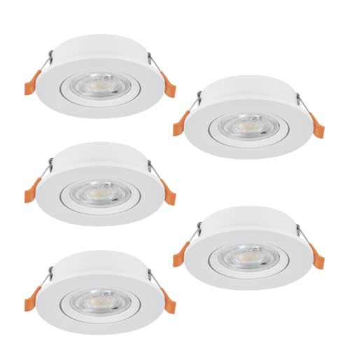 Eglo 5-Piece Set LED recessed spotlights Barranco, Ceiling Spots with dip Switch, Adjustable Ceiling Lights Made of White Plastic, Warm White - Cool White, Including GU10 Bulbs, Ø 9 cm