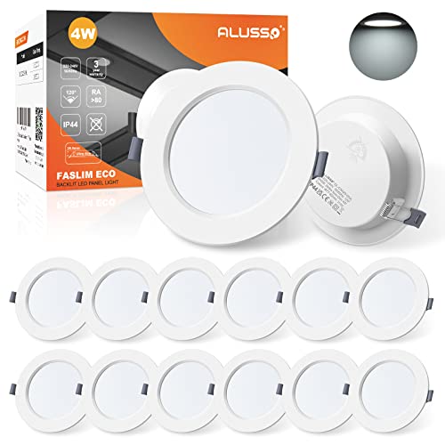 ALUSSO LED Downlights Ceiling 4W Ultra Slim LED Recessed Ceiling Lights IP44 Spotlights Ceiling Lights 6500K Cool White Ceiling Spots for Bathroom Kitchen Living Room, 12 Pack