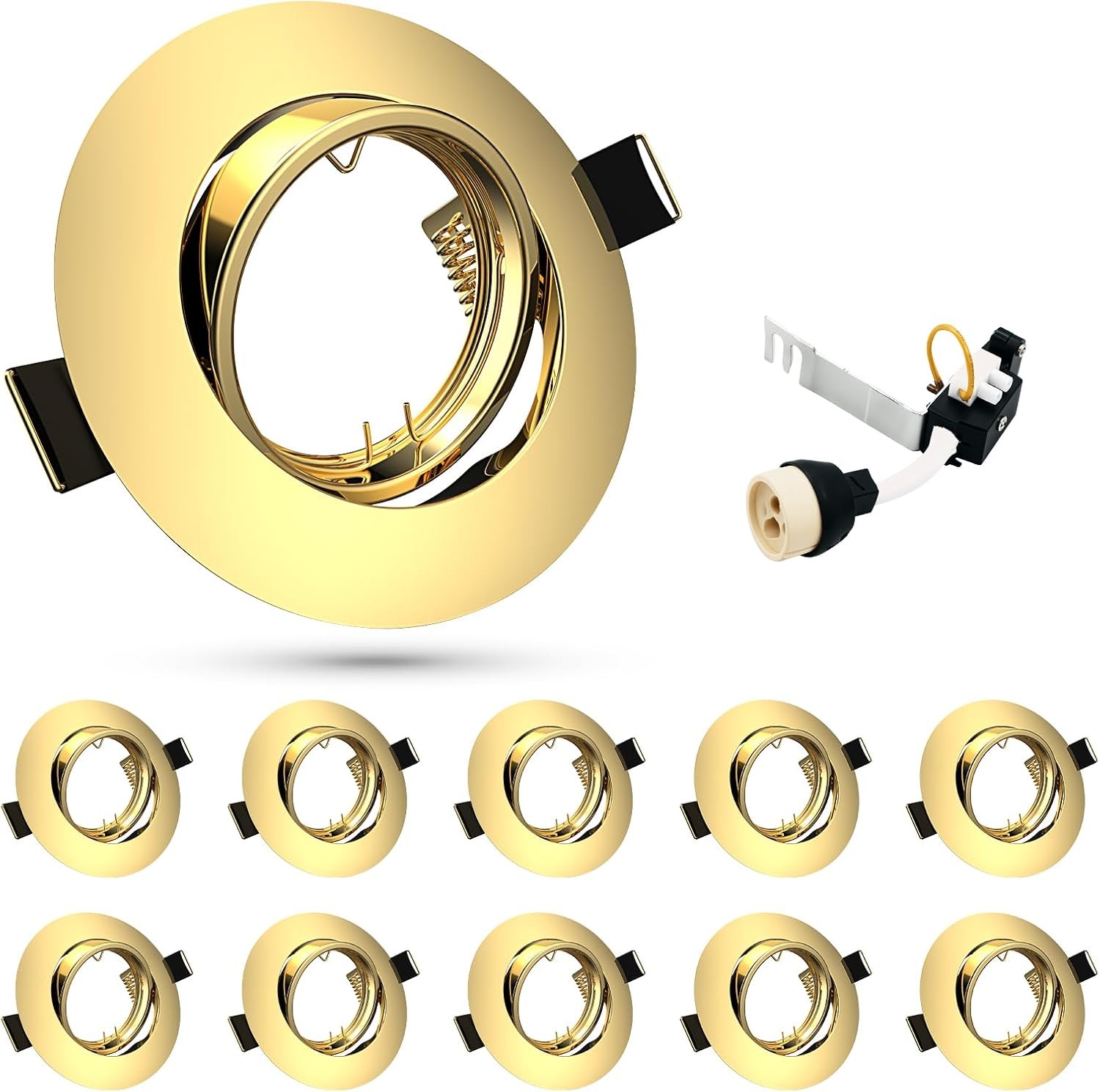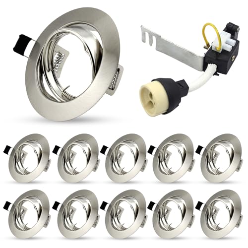 HiBay 10x Modern GU10 LED Downlights for Ceilings Tilt Recessed Ceiling Lights Round Brushed Chrome Spotlights Fitting 240V - Outer Diameter:90 mm,Cut-Out Hole Size:68-80 mm