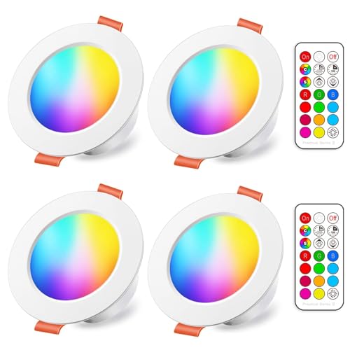 iLC LED Recessed Ceiling Lights, 8W Colour Changing RGB, Φ70-85mm Hole, Spotlights Round Panel Downlights Warm White 2700K, 12 Colours 2 Modes Timing with Remote Control (4 Pack)